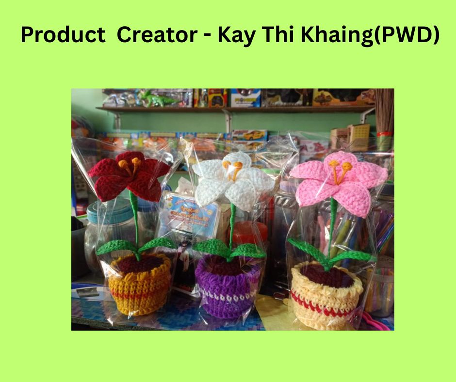 သူမ၏ အနုပညာလက်ရာများကို မိမိအိမ်ဆိုင် လည်းကောင်း၊ အမျိုးသားဖြစ်သူ ကိုမောင်ကိုကို (ကိုယ်အင်္ဂါမသန်စွမ်းသူ) မှ ရပ်ကွက်ဈေးများ၊ ပွဲတော်များတွင်လည်းကောင်း လိုက်လံ၍ ရောင်းချလျှက်ရှိပါသည်။