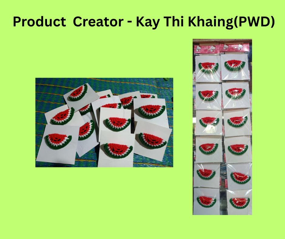 သူမ၏ အနုပညာလက်ရာများကို မိမိအိမ်ဆိုင် လည်းကောင်း၊ အမျိုးသားဖြစ်သူ ကိုမောင်ကိုကို (ကိုယ်အင်္ဂါမသန်စွမ်းသူ) မှ ရပ်ကွက်ဈေးများ၊ ပွဲတော်များတွင်လည်းကောင်း လိုက်လံ၍ ရောင်းချလျှက်ရှိပါသည်။