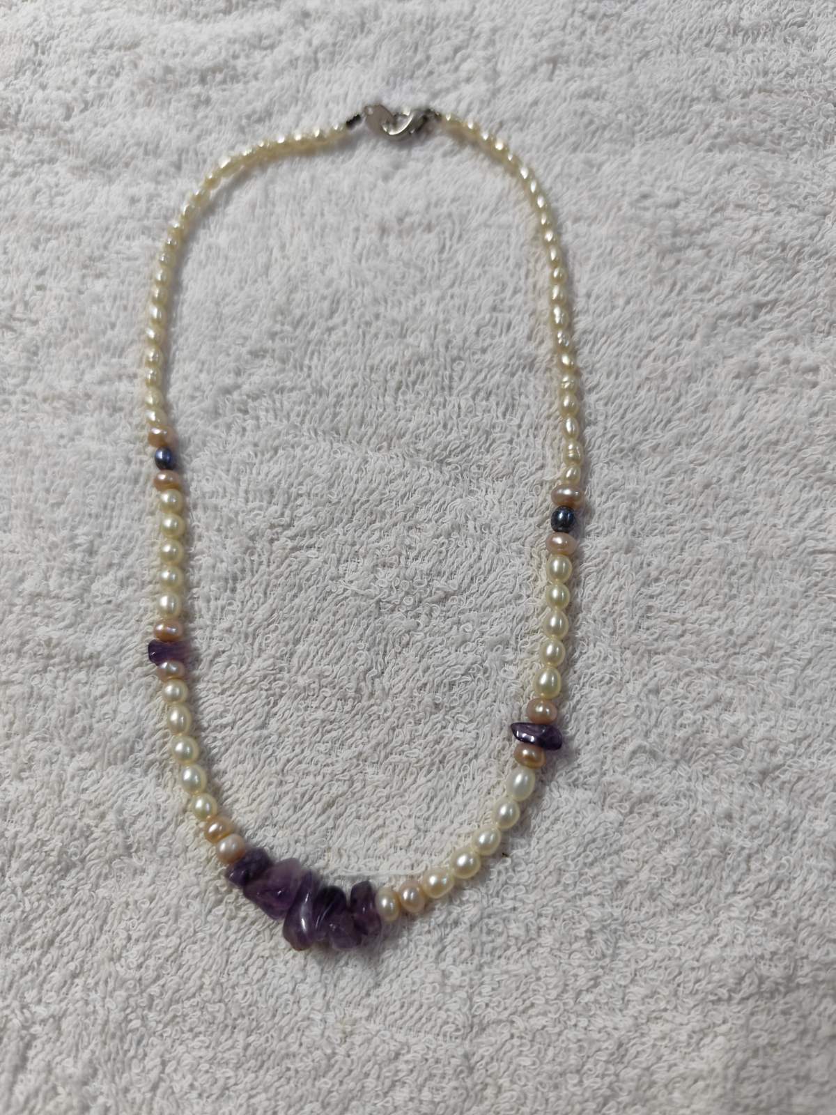 မွေးပုလဲလုံးချောအသေး နှင့်သဘာဝခရမ်းဆွဲကျောက်လည်ဆွဲ
