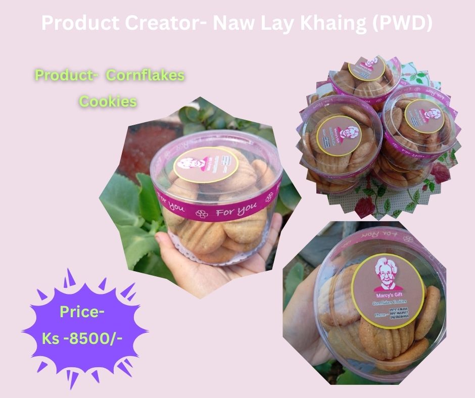 ယခုလက်ရှိ မုန့်လုပ်ငန်းကို ကျွန်မတို့လေးယောက် ဦးစီးပြီး လုပ်ဆောင်နေပါတယ်။ ကျွန်မတို့ လေးယောက်ရဲ့ရည်ရွယ်ချက်ကတော့ မုန့်လုပ်ငန်းနှင့်အောင်မြင်မှုရရှိချိန် မသန်စွမ်းအမျိုးသမီးများ အမှီအခိုးကင်းကင်းနဲ့ကိုယ်ပိုင်ဝင်ငွေရရှိနိုင်ရန် မုန့်လုပ်ငန်းနဲ့သက်ဆိုင်သောပညာများကို မျှဝေသင်ကြား ပေးသွားမှာဖြစ်ပါတယ်။
